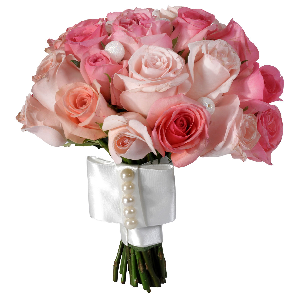 Роза одноголовая розовая, декоративные бусинки. Упаковка (лента, пленка, крафт, сетка, пленка матовая)