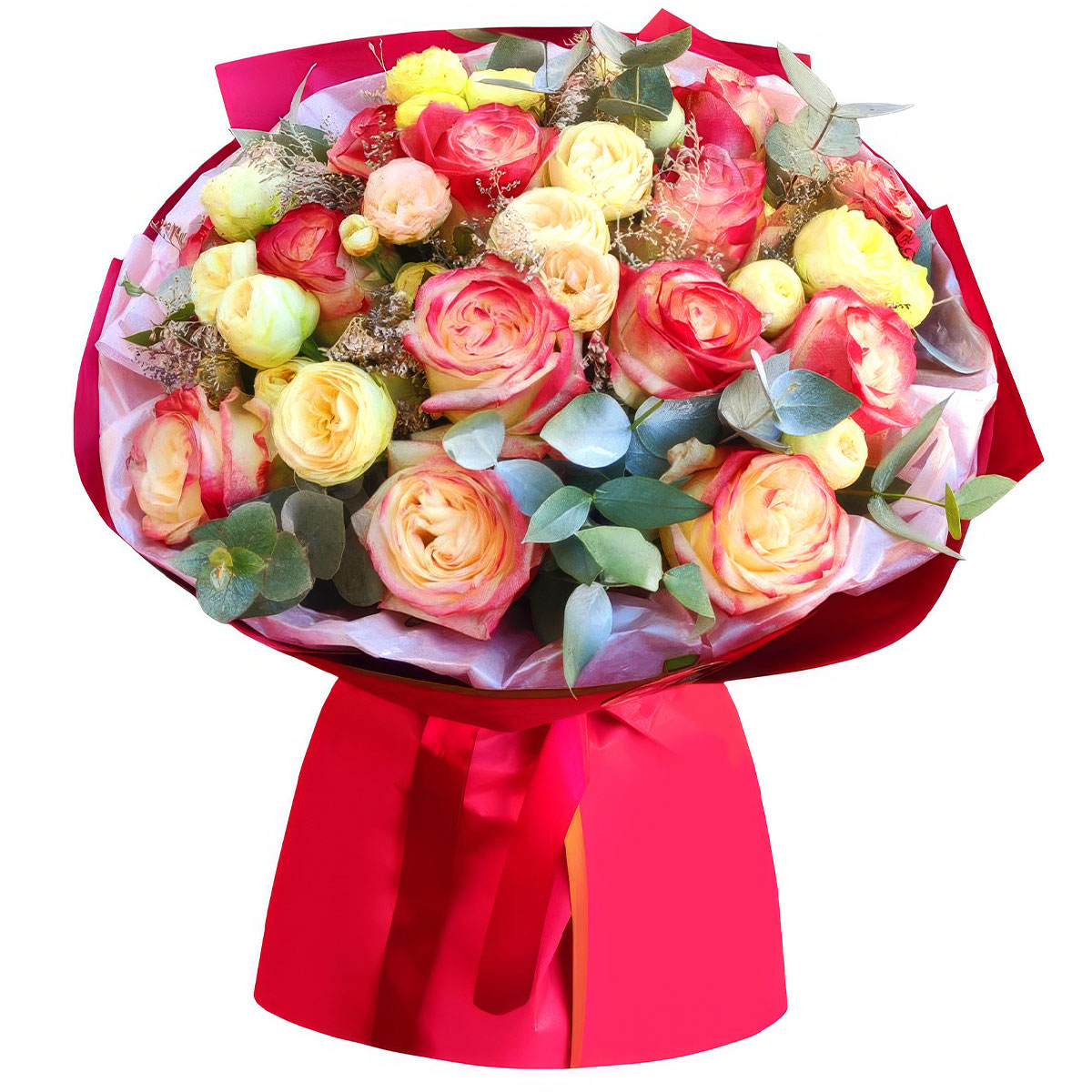 | Состав | Кустовые розы, Пионовидные розы, Розы, Эвкалипт |