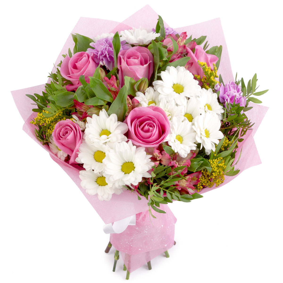 | Состав | Альстромерии, Гвоздики, Розы, Хризантемы |