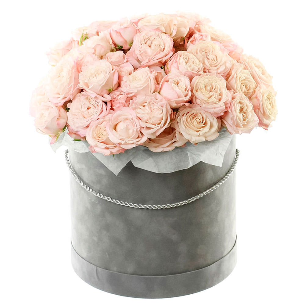 Роза кустовая розовая. Упаковка (шляпная коробка, квадратный бокс, коробка сердце, оазис)