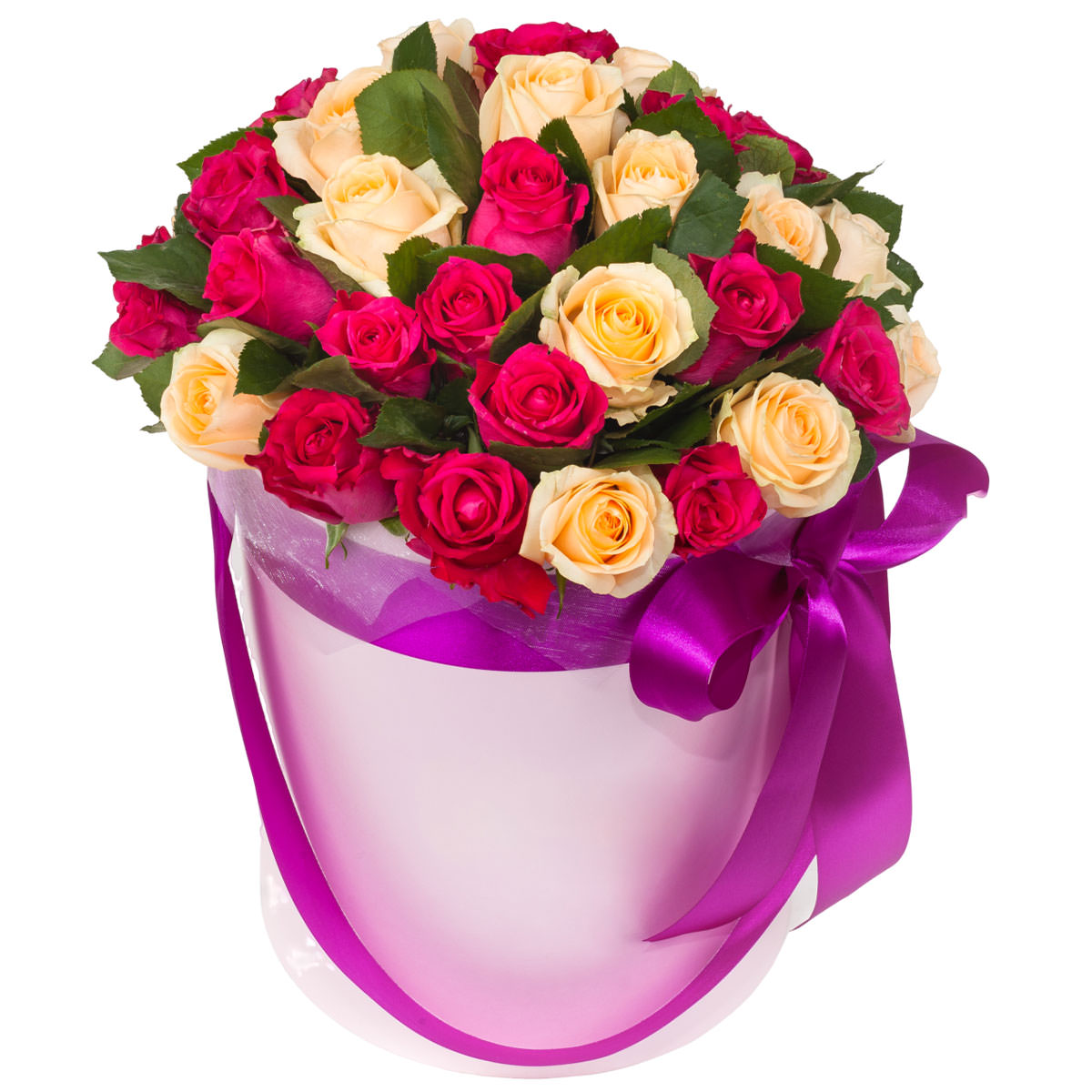 Роза одноголовая розовая и персиковая. Упаковка (шляпная коробка, квадратный бокс, коробка сердце, оазис)